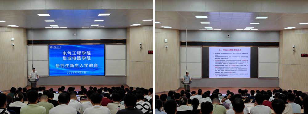 9月9日上午,电气工程学院、集成电路学院2025级硕士研究生新生入学教育大会在2教报告厅召开,全体172名2025级研究生参会。