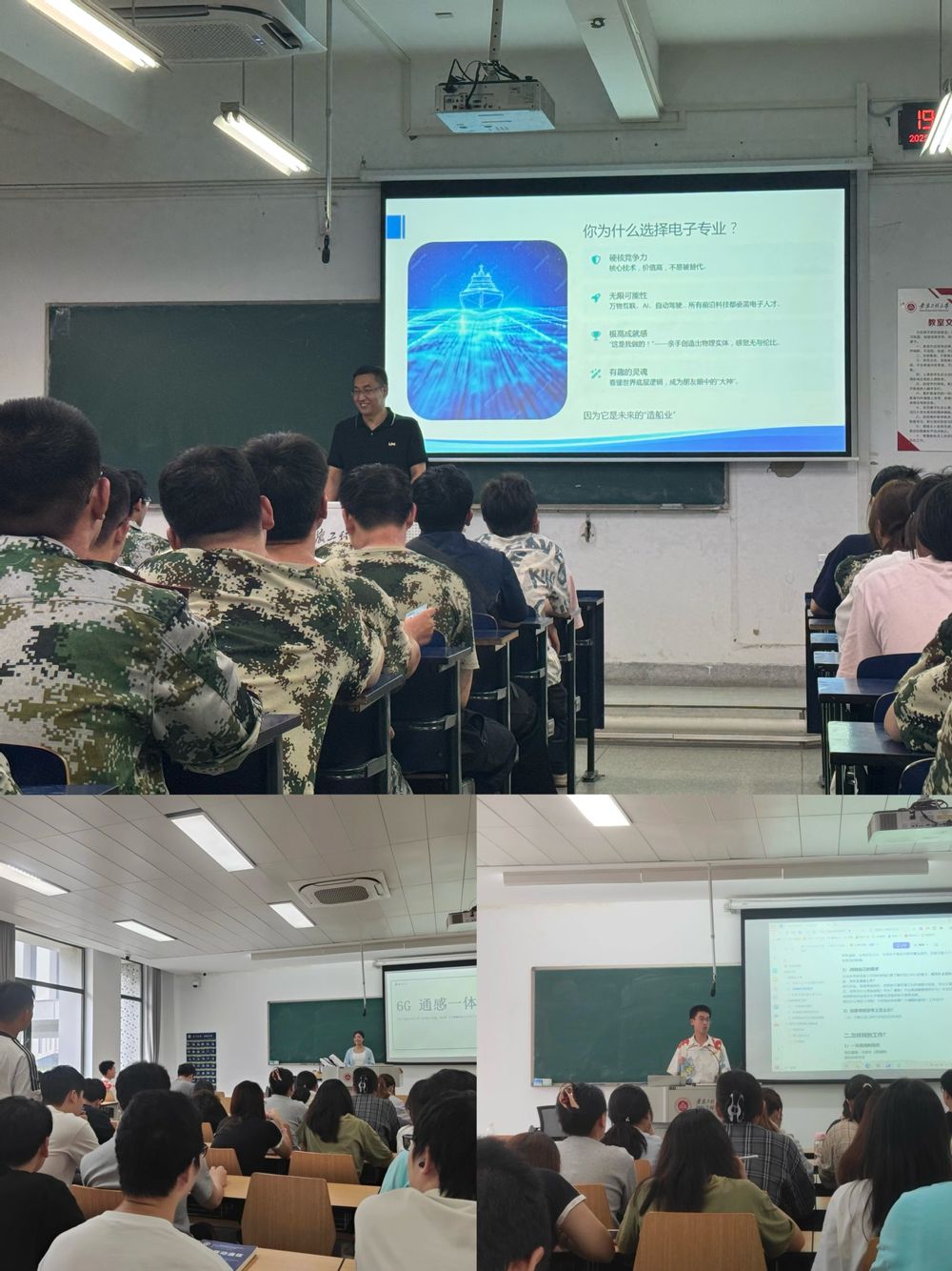 校友说:对接行业,优秀校友分享职场路径。结合校庆90周年系列活动,学院邀请了2002届电子信息科学与技术专业、芜湖伯特利电子控制系统有限公司资深工程师强玉霖,2024届通信专业、南京邮电大学研究生朱倩倩,2024届通信工程专业、三只松鼠公司赵梓琦等优秀校友为新生指明奋斗方向。他们分别结合行业案例,研究生阶段的科研生活等,详解5G、人工智能等领域的电子专业就业前景,鼓励学子深耕技术、关注行业前沿。