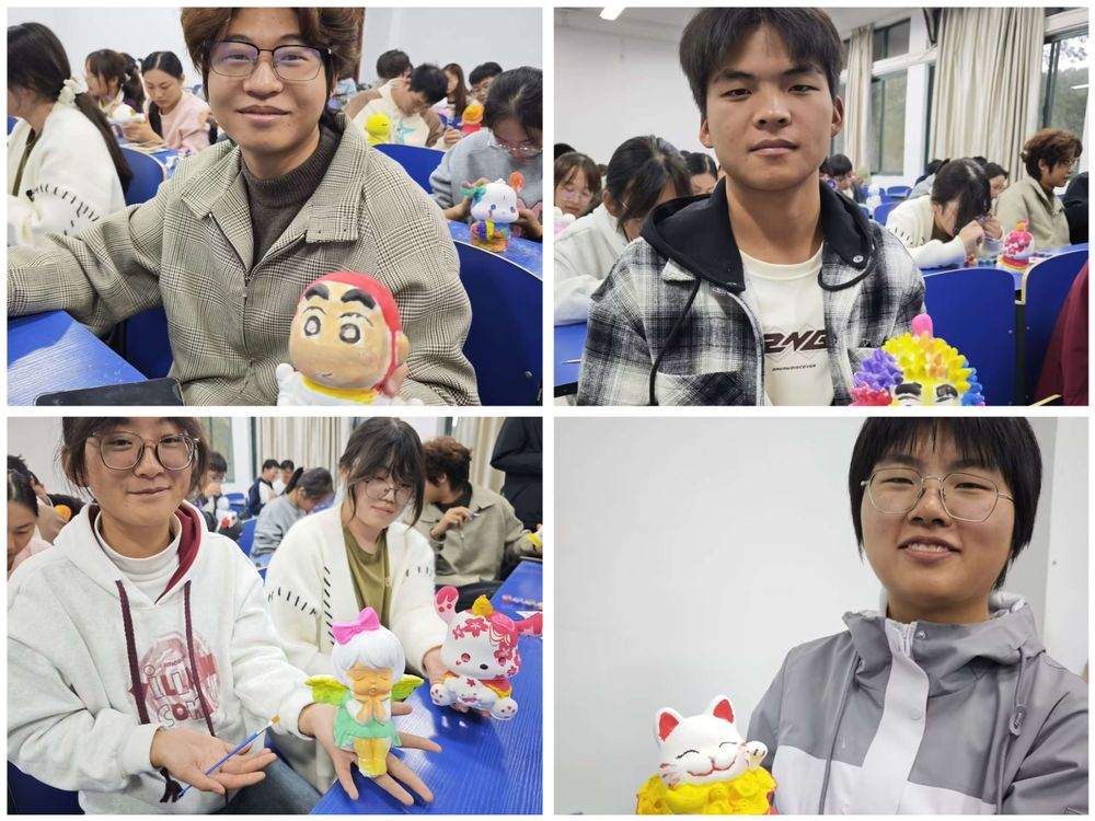 有的偏爱个性涂鸦,用线条和图案展现潮流态度;还有的结合专业特色,在作品中融入活动启动后,同学们迅速投入创作。有的专注调配渐变色彩,为石膏娃娃赋予梦幻质感;科技元素、动漫符号等创意设计。