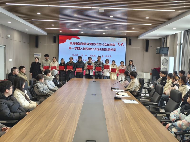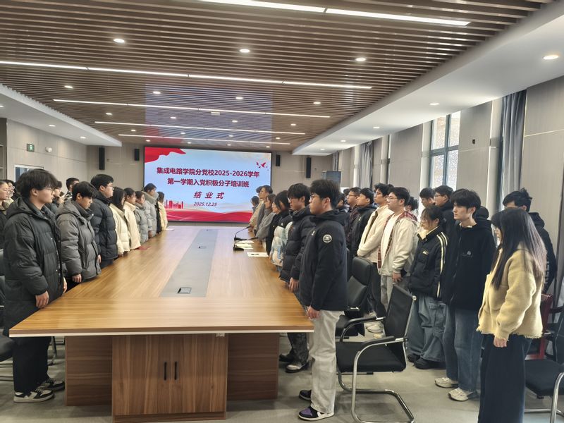 12月25日,集成电路学院分党校2025-2026学年第一学期入党积极分子培训班结业式在学院308会议室顺利举行。学院党委副书记苏燕南、组织员翁文香、培训班班主任阳岚及全体71名结业学员参加了此次结业式。