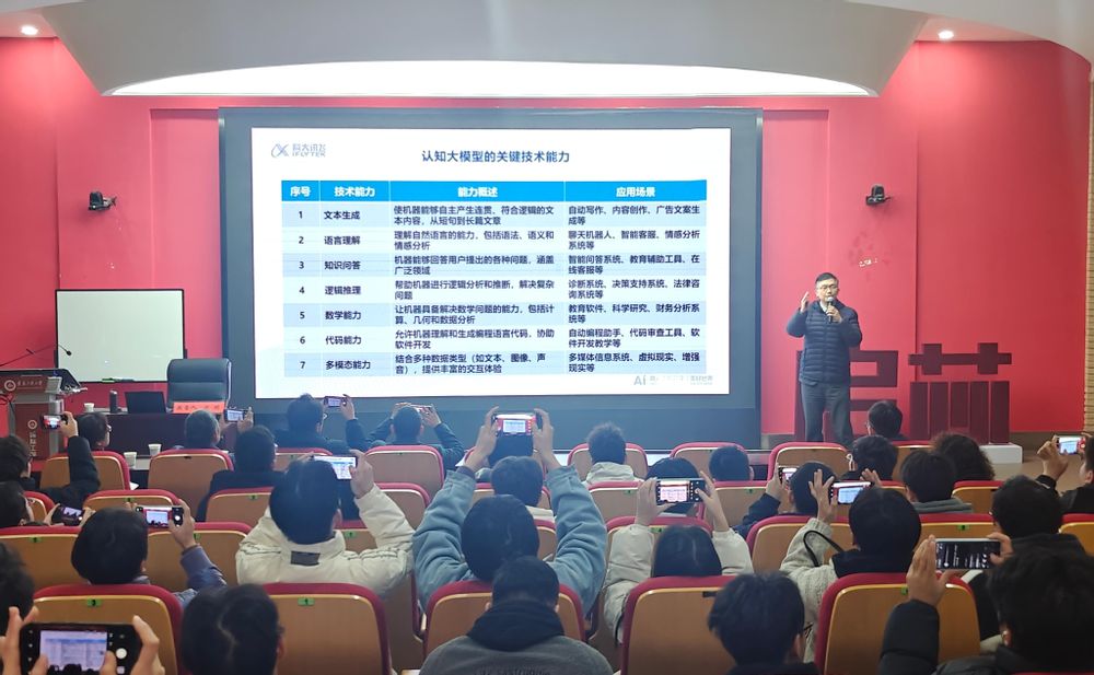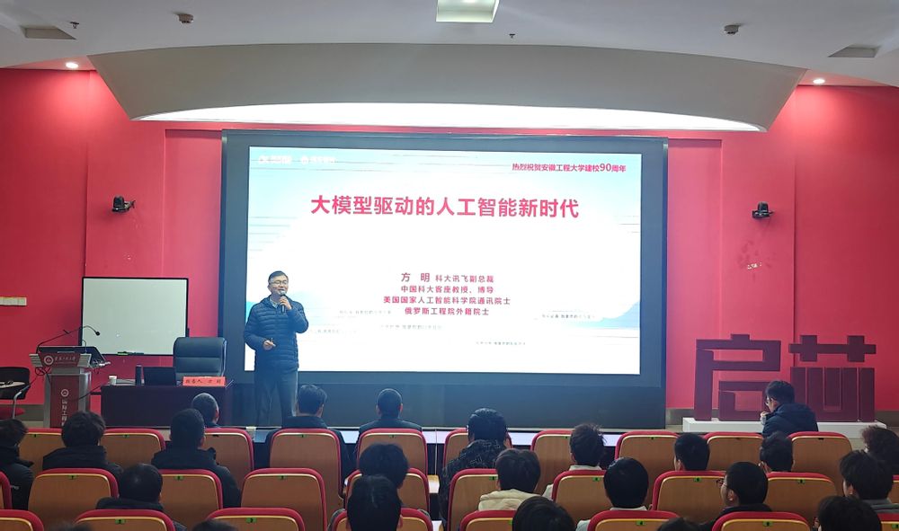 12月27日上午,集成电路学院在国际工程师学院梦溪报告厅举办“启芯”系列校友专场报告会,献礼安徽工程大学90周年校庆。学院特邀电子90级校友、科大讯飞副总裁、博士生导师、美国国家人工智能科学院通讯院士、俄罗斯工程院外籍院士方明返校,作题为《大模型驱动的人工智能新时代》的专题报告。学院领导班子、师生代表200余人参加,现场反响热烈。