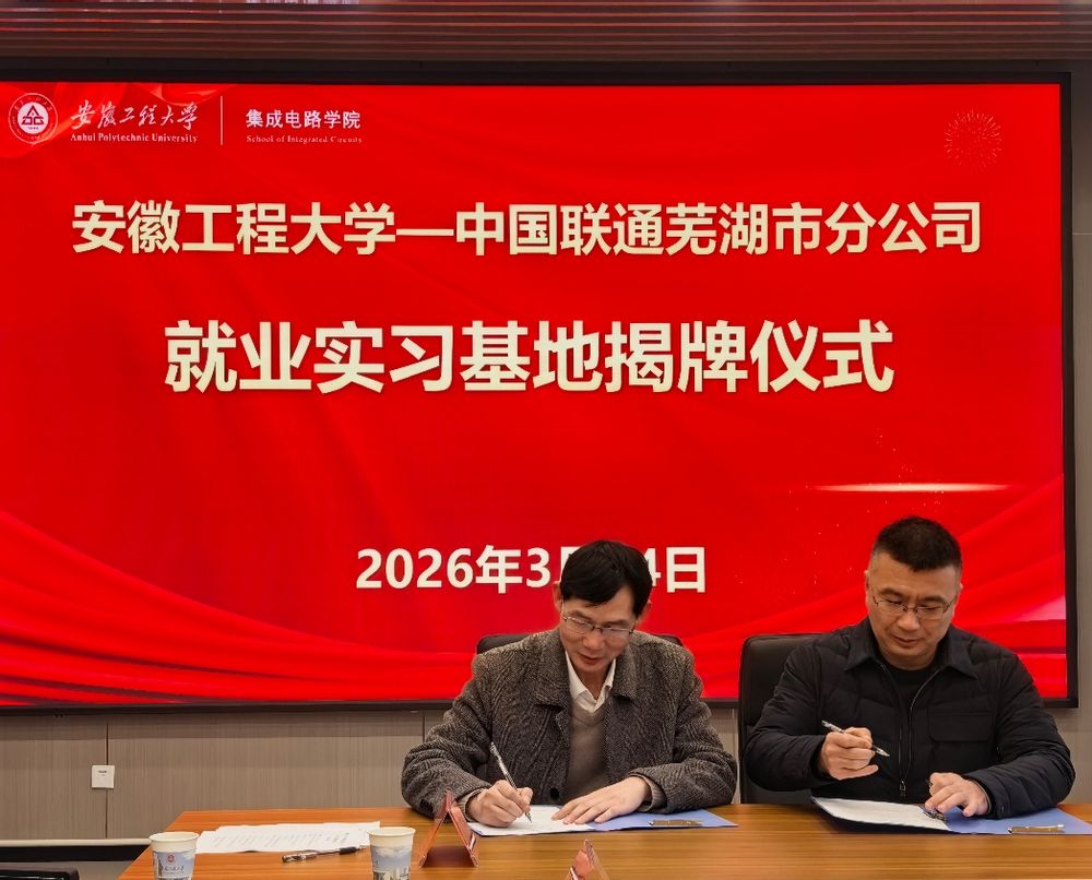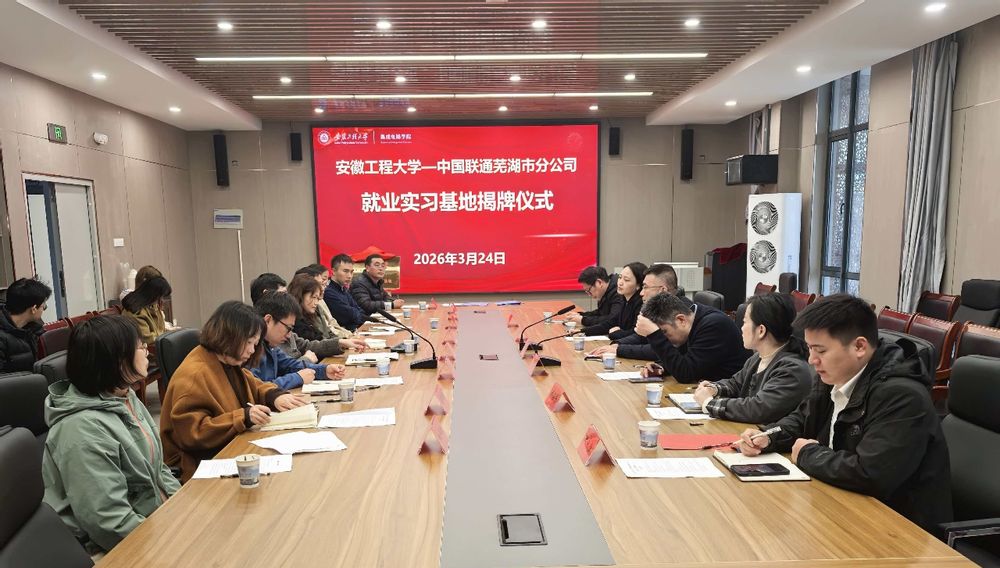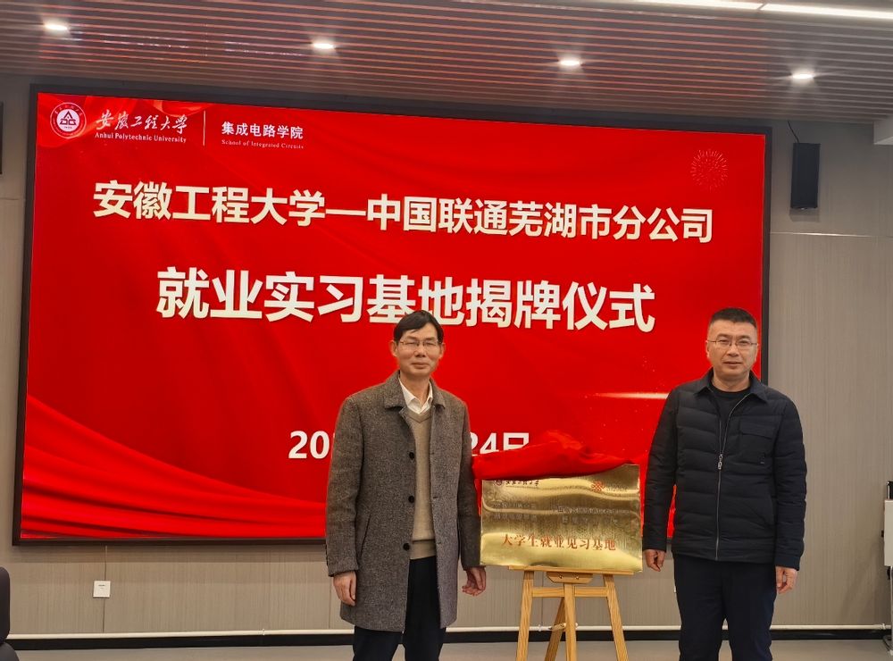 3月24日上午,集成电路学院与中国联通芜湖市分公司就业实习基地揭牌仪式在学院308会议室举行。