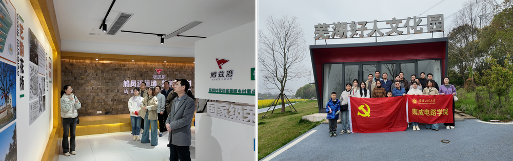 为进一步增强党员教师的党性修养与团队凝聚力,4月3日,集成电路学院党委和工会组织党员教师赴芜湖市湾沚区鸠兹湾艺创共富乡村,开展“党建+乡村振兴”主题党日活动。活动以党建为引领,融合生态研学、文化体验与团队建设,推动党建工作与乡村振兴实践深度融合,激活党员队伍干事创业内生动力。
