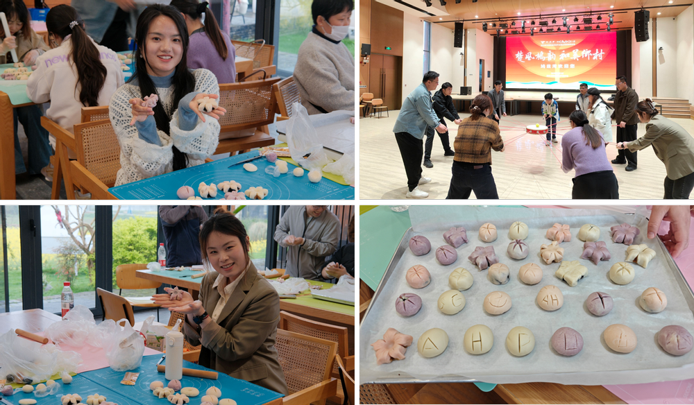 在乡村工坊,党员教师们亲手体验了中式糕点的烘焙制作,直观体会当地依托“艺创+产业”模式带动村民增收、实现共同富裕的有效路径。拓展训练环节,趣味与挑战兼具的团队协作项目,让大家在分组竞技、默契配合中释放工作压力,增进同事情谊,进一步提升了团队向心力与凝聚力。